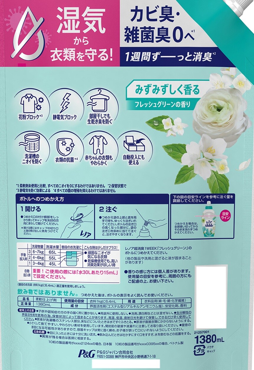 - レノア 超消臭 1week みずみずしく香るフレッシュグリーンの香り つめかえ用超特大サイズ 1380ml