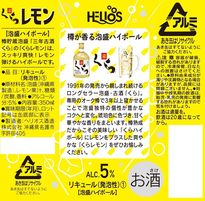 [48本]ヘリオス酒造 くらレモン 350ml | 樫樽熟成の泡盛古酒がベースのレモン弾けるハイボール