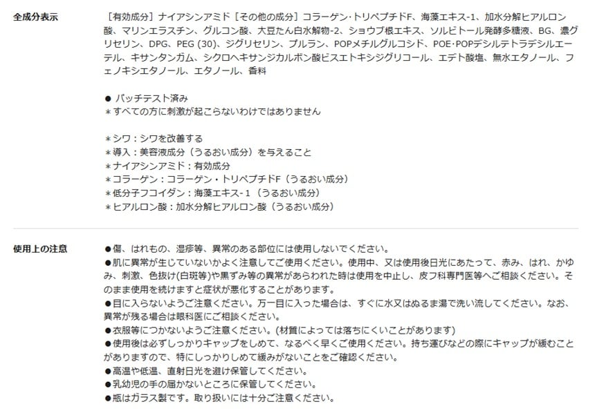 洗顔後にまず、美容液で効かせるシワ改善ブースター。ナイアシンアミドを有効成分として配合。