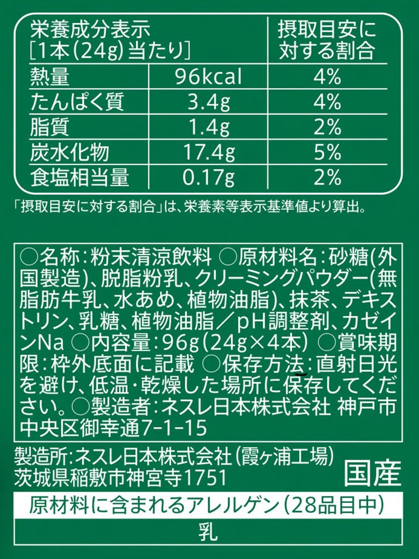 厳選した抹茶とミルクパウダーを使用し、ミルクリッチな味わいを実現。