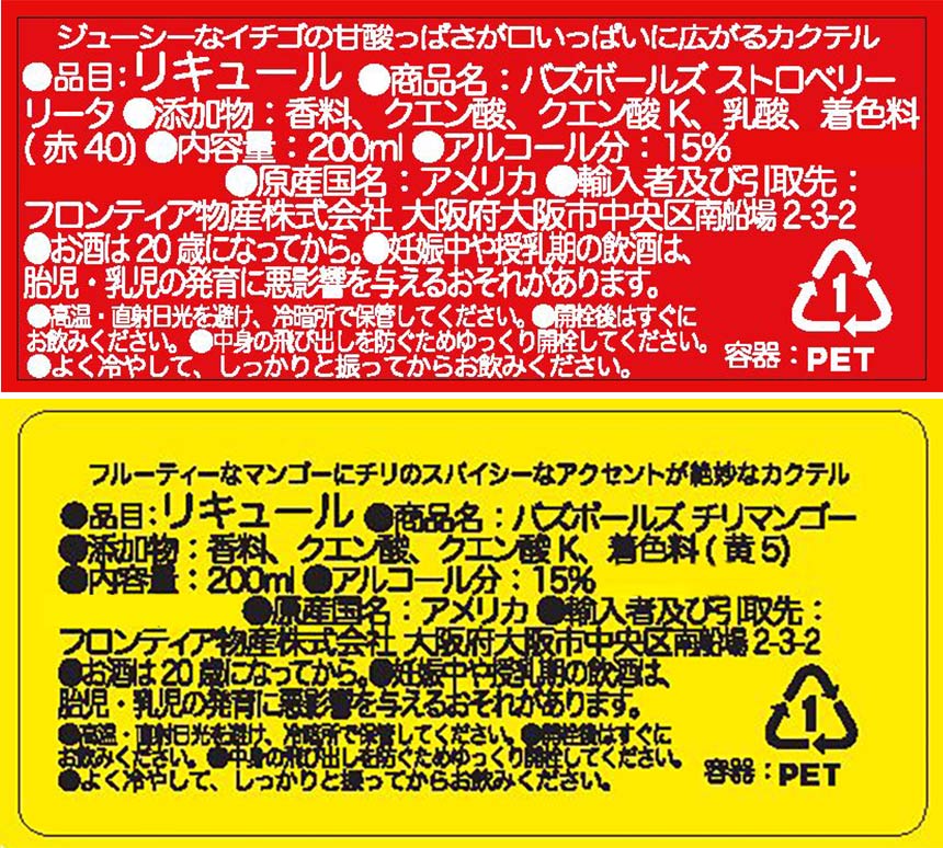- バズボールズ ストロベリーリータ 200ml / チリマンゴー 200ml