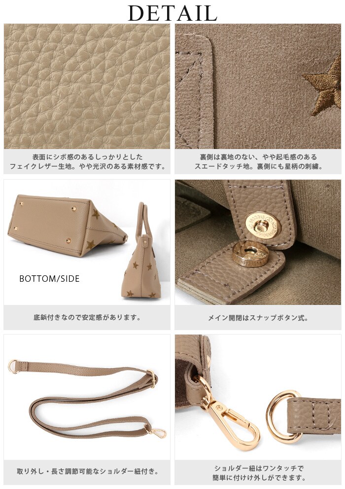 星柄が印象的な大人のお洒落バッグ。星刺繍ミニトート『Planet』プラネット | トートバッグ トート ショルダーバッグ レディース 星柄 刺繍 フェイクレザー 通勤 通学