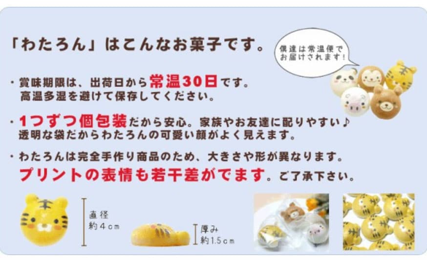 ・注意事項:わたろんは完全手作り商品のため、大きさや形、表情にバラツキが出てしまいます。予めご了承ください。