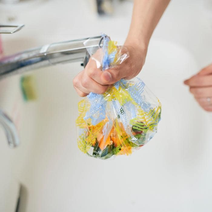 シンク内シートを敷いていれば、料理のときに出る野菜の皮や切れ端などをシンクにそのまま捨てて、