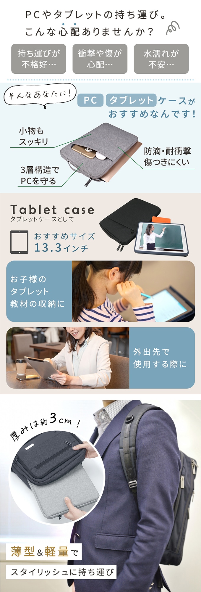 [ネイビー/13.3インチ] ノートパソコンケース | 薄い!軽い!かさばらない!3層構造でしっかりPCを守る。防水素材を使用。雨の日も安心!