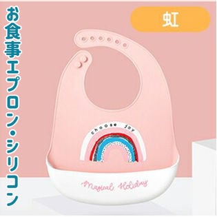 - 【虹】お食事エプロン シリコン ビブ 防水 かわいい 幼児 保育園 ポケット付き