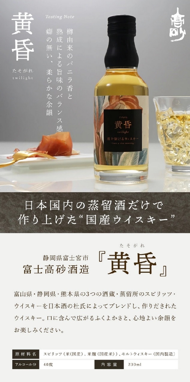 《黄昏》スピリッツ(米(国産)・米麹(国産米))モルトウィスキー(国内製造)