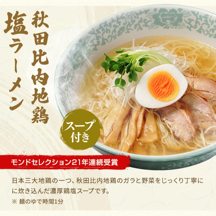 【4種/各1食】林泉堂のラーメン(麺&スープ)アソートセット | 比内地鶏塩・醤油・味噌・十文字ラーメン4種類の味が楽しめる!