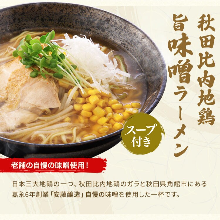 添付調味料[みそ(国内製造)、豚脂、比内地鶏ガラスープ、ポークエキス、鶏脂、食塩、砂糖、ごま油、香辛料、酵母エキス、オニオンパウダー/調味料(アミノ酸等)、カラメル色素]