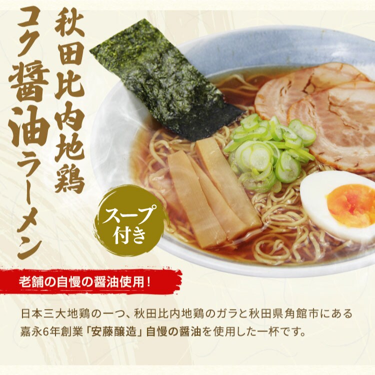 添付調味料[しょうゆ(国内製造)、香味油、たんぱく加水分解物、ポークエキス、食塩、ポークスープ、鶏脂、でん粉、砂糖、比内地鶏ガラスープ、酵母エキス、豚脂、オニオンエキス、かつお節エキス、香辛料/調味料(アミノ酸等)、酒精、カラメル色素、増粘剤(キサンタン)、酸味料、甘味料(ステビア、カンゾウ) ]