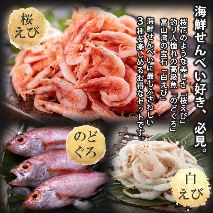 - 【3種計190g/計3袋】「のどぐろせんべい」「白えびせんべい」「桜えびせんべい」3種詰め合わせ