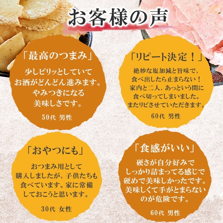 ・お召し上がり方:おやつ、お茶請け、おつまみでお召し上がりください。