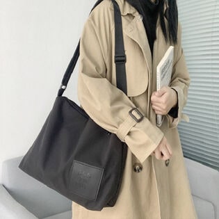 - 【ブラック】斜め掛けも出来るシンプルナイロントート