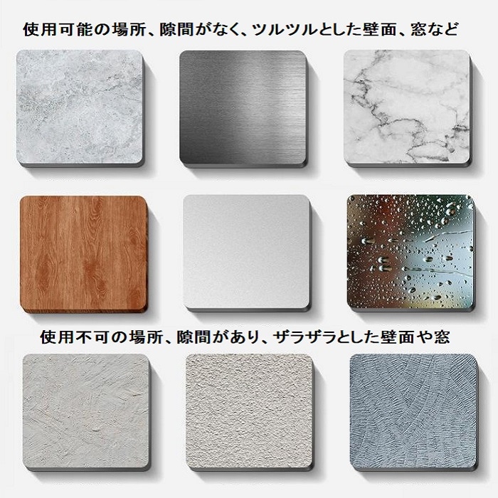 ※平坦の壁のみに使用可能です(ざらざらした材質のものや隙間がある場所には使用できません)