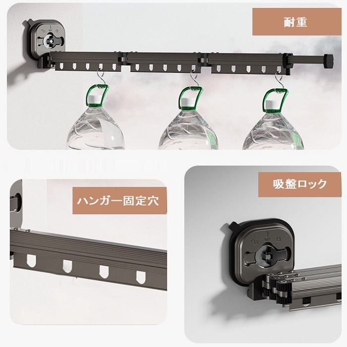 【1段タイプ】穴あけ不要!超強力吸盤式物干し | 室内、室外問わずアウトドアでも大活躍物干し!