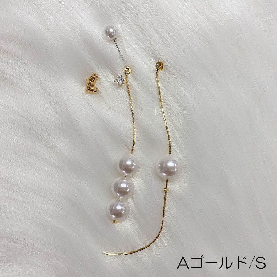 - 【ゴールド/Aタイプ】2wayアシンメトリーパールピアス