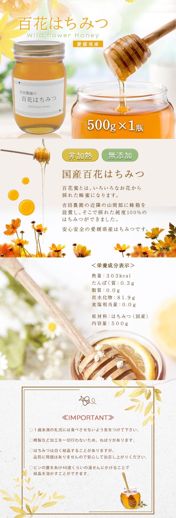 - 【500g】 愛媛県産百花はちみつ