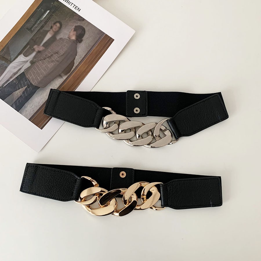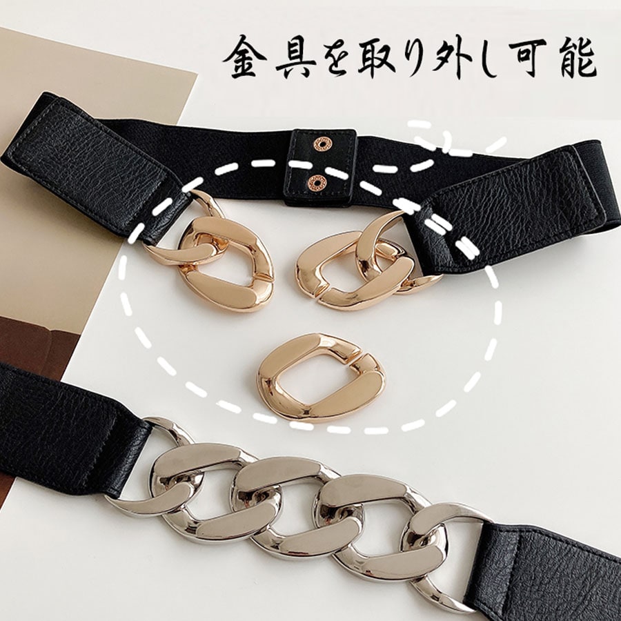 - 【シルバー】幅広ビッグチェーンゴムベルト