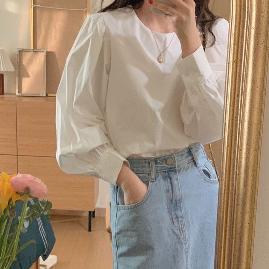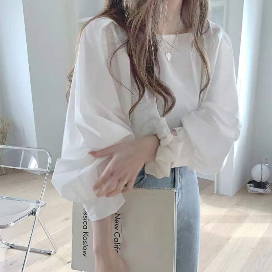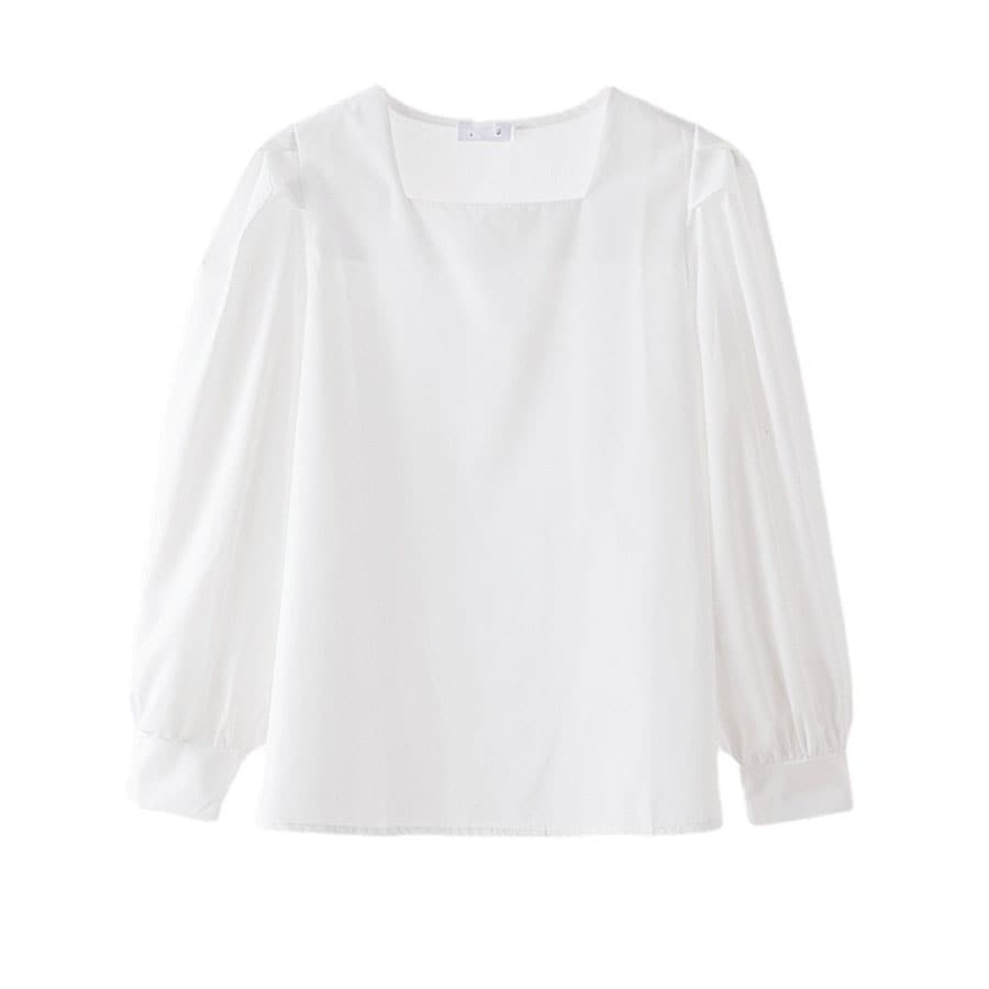 - 【ホワイト】スクエアネックパフスリーブブラウス(長袖)