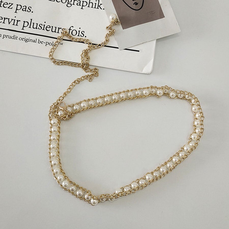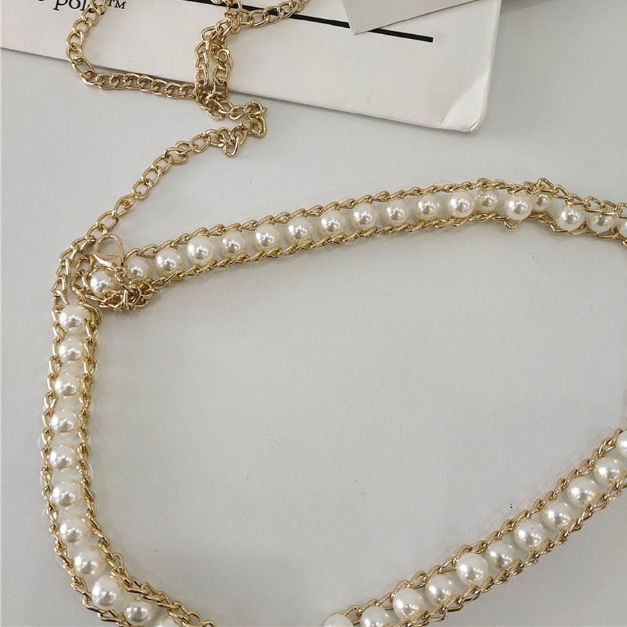 【ホワイト】パールチェーンベルト | パーティ・カジュアルファッションなど様々なコーデに合わせやすい