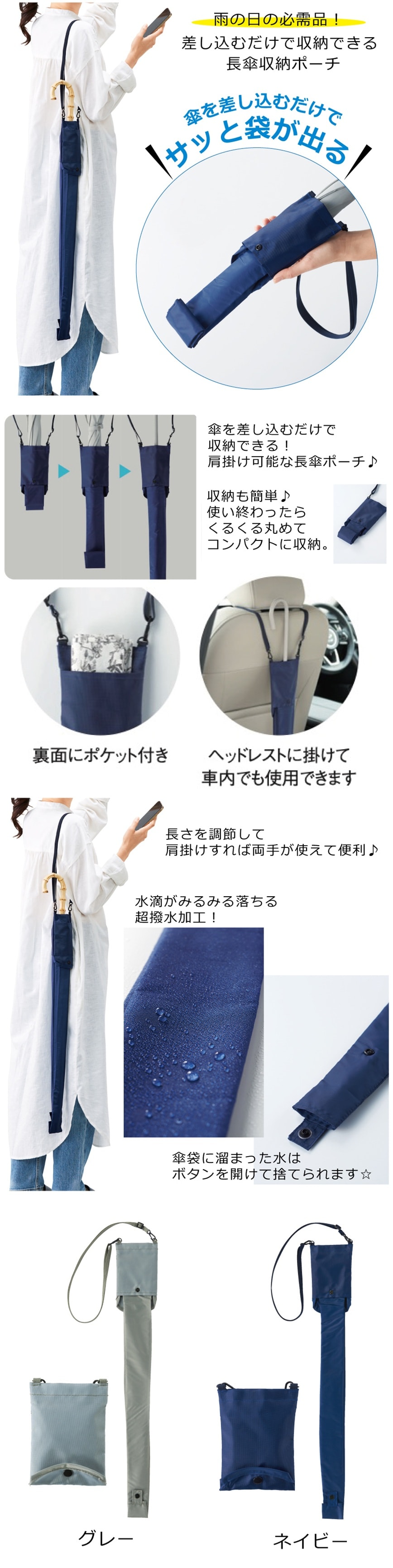 【2個セット】サッと収納できる!長傘ポーチ | シュッと差し込むだけで簡単収納♪ ショルダー付きで肩掛けもOK!車のヘッドレストにも◎