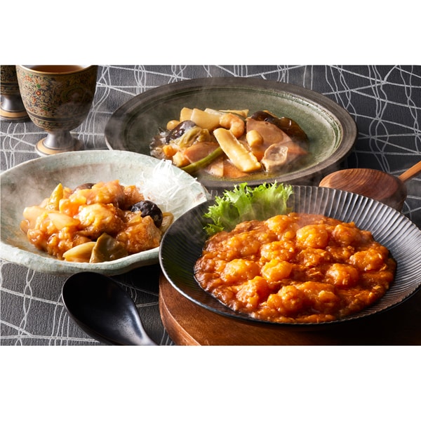 中華料理の名店「赤坂四川飯店」監修の、人気の3種類のみを詰め合わせた中華惣菜セットです。