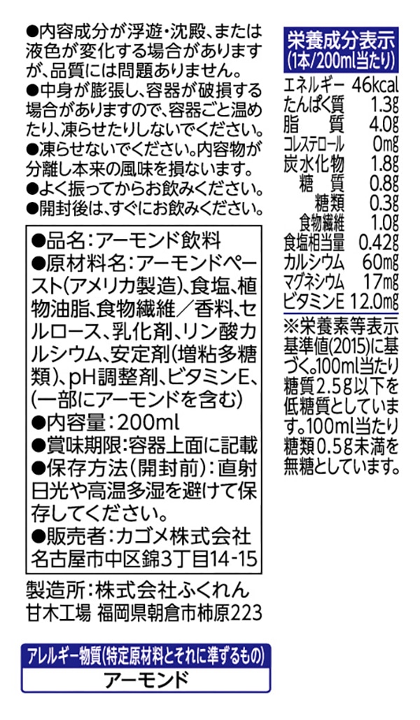 ・アレルギー表示:アーモンド