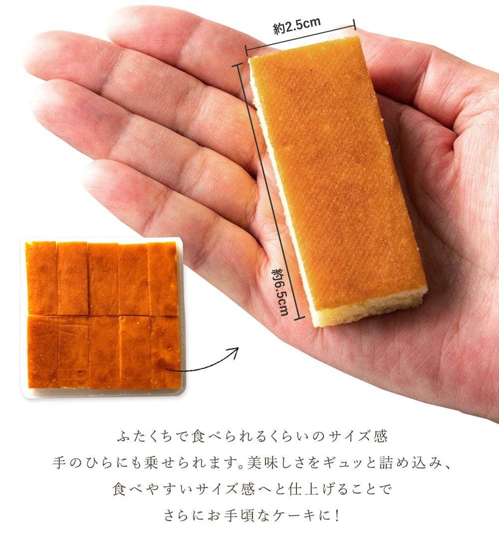 ふわふわとした食感の生地と、ほんのりと香るチーズの美味しさ、甘すぎないチーズケーキバーをお楽しみ下さい。