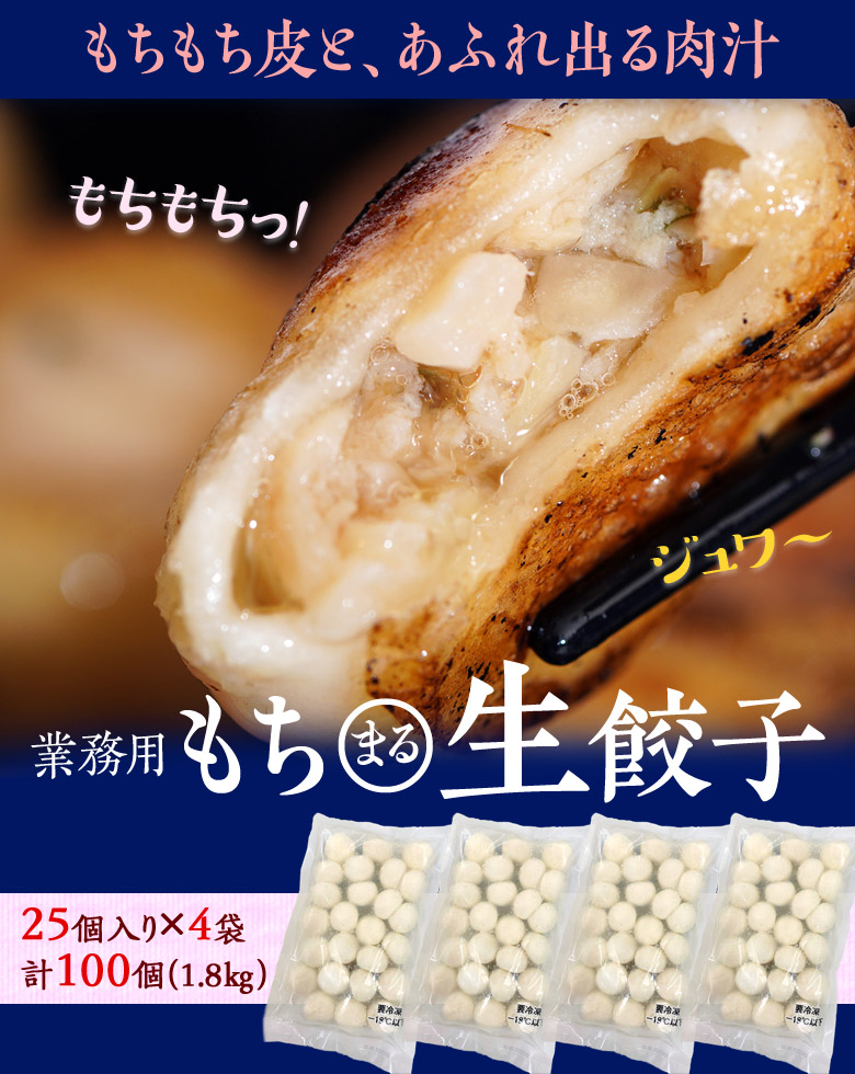 【計100個/25粒×4P(1.8kg)】愛媛県産ふれ愛・媛ポーク使用『もち〇生餃子』 | もちもち食感がたまらない!