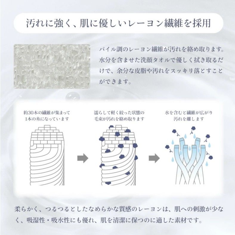 【3枚組】レーヨン素材の洗顔タオル | 気になる汚れや古い角質を取ってつるすべ肌に