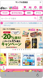 - ・本キャンペーンに応募された方には、dポイントクラブアプリ、d払いアプリのメッセージ機能におきまして、お客様のd払い モバイルオーダーでのご利用情報をもとにサンプル百貨店からメッセージ(お得な商品やキャンペーンの情報)をお送りいたします。