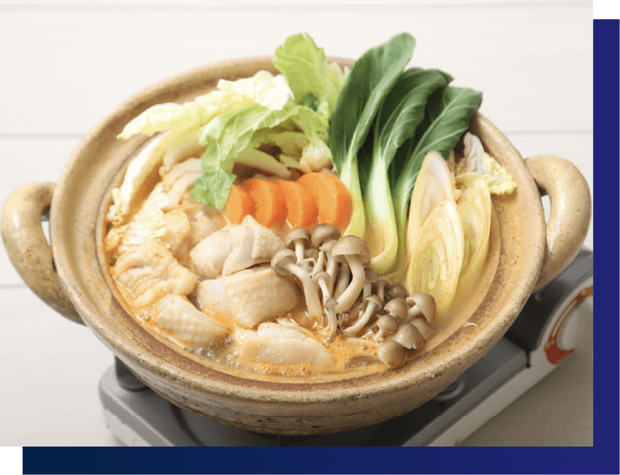 鍋に「旨鶏しお辛鍋つゆストレート」をよくふってから入れて、火にかける。煮立ったら1を入れ、具材に火を通す。