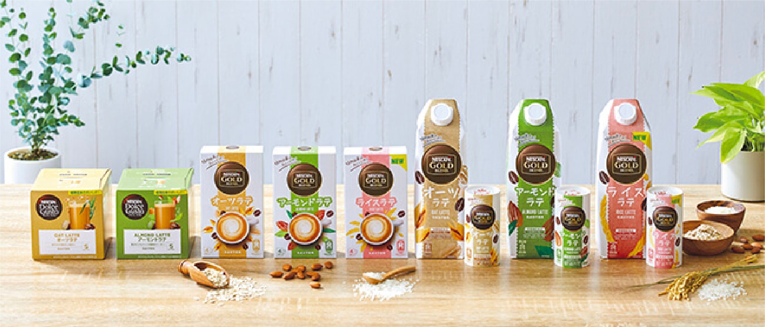 お湯を注いで作るスティックタイプの製品の他に、どこでも手軽に楽しめる液体飲料の製品、カプセル式本格カフェシステム「ネスカフェ ドルチェ グスト」専用カプセルと、3タイプをラインナップ。