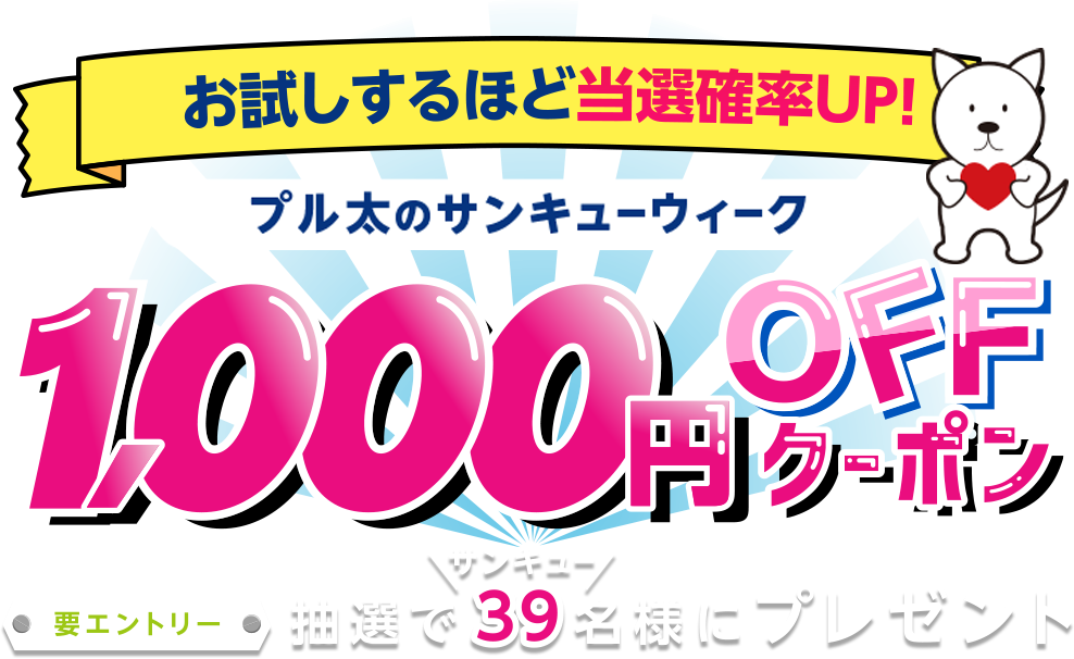 サンプル百貨店のご利用者様に日頃の感謝を込めて、期間中にお試しされた方の中から抽選で39(サンキュー)名様に1,000円OFFクーポンをプレゼント。