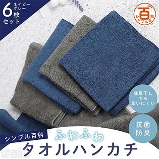 <シンプル百科>抗菌防臭ふわふわタオルハンカチ ネイビーグレーアソート 6枚セットお試し費用税込・送料込1枚あたり248.4円参考価格オープン1490円6 .7 ポイント還元 -