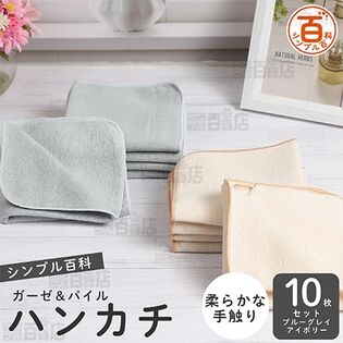 <シンプル百科>ガーゼ&パイルハンカチ ブルーグレイアイボリーアソート 10枚セットお試し費用税込・送料込1枚あたり149円参考価格オープン1490円6 .7 ポイント還元