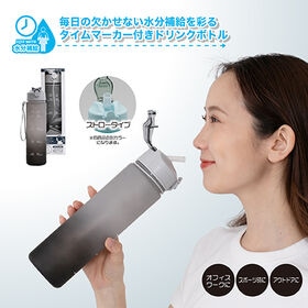 【グレー×ブラック】ストロー付きタイムマーカーボトル