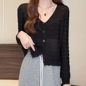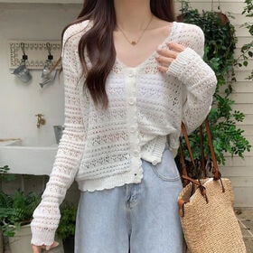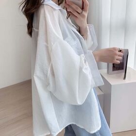 【ホワイト】シャツカーディガン 透け感ボーダー