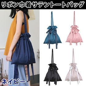 【ピンク】リボン巾着ベロアトート