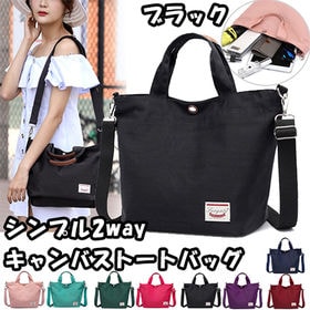 【ブラック】手提げにもショルダーにもなる「キャンバス2way...