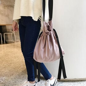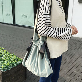 【ベージュ】斜め掛けも出来るシンプルナイロントート