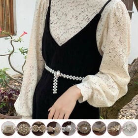 【ホワイト】パールが並んだ ボアマフラー 差し込みティペット