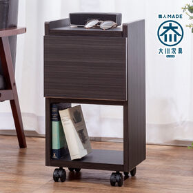 【ライトブラウン】天然木リビングワゴン コンセント付