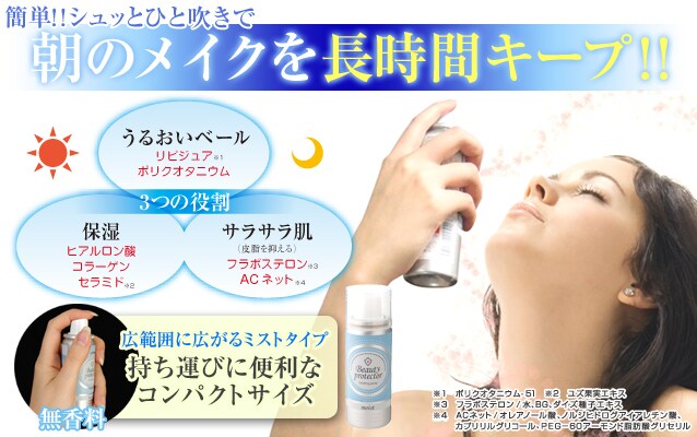 ※日焼け止めの上からビューティープロテクターをスプレーすることで日焼け止めのもちをよくします