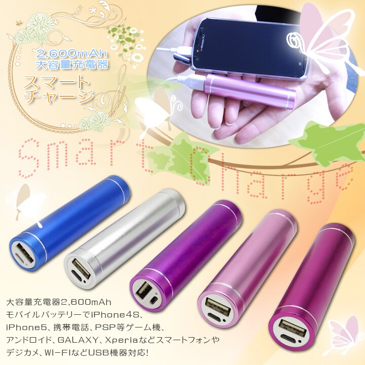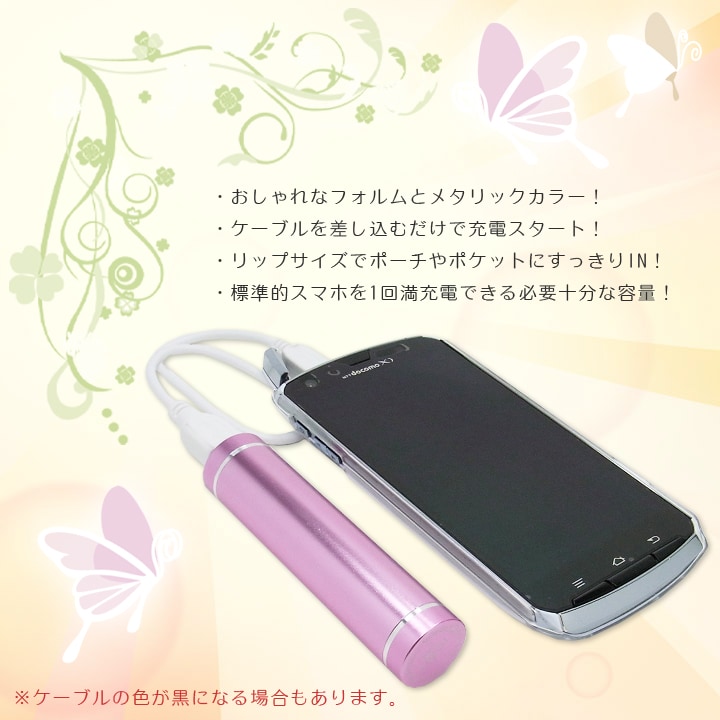 - 【ライトピンク】スマホ充電約1回『スマートチャージ』★リップサイズでカバンにスッキリ収納♪(全5色)