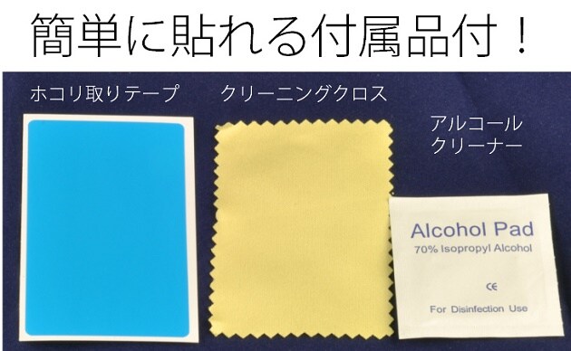 ■セット内容:ガラスフィルム1枚、拭き取りクロス1枚、ほこり取りシール1枚、アルコールクリーナー×1