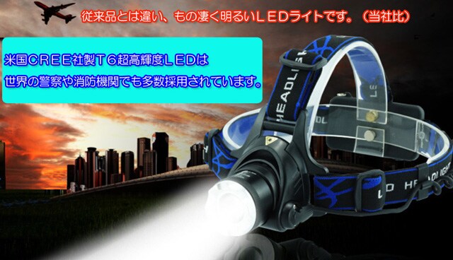 - 米国CREE社製T6超高輝度LEDヘッドライト