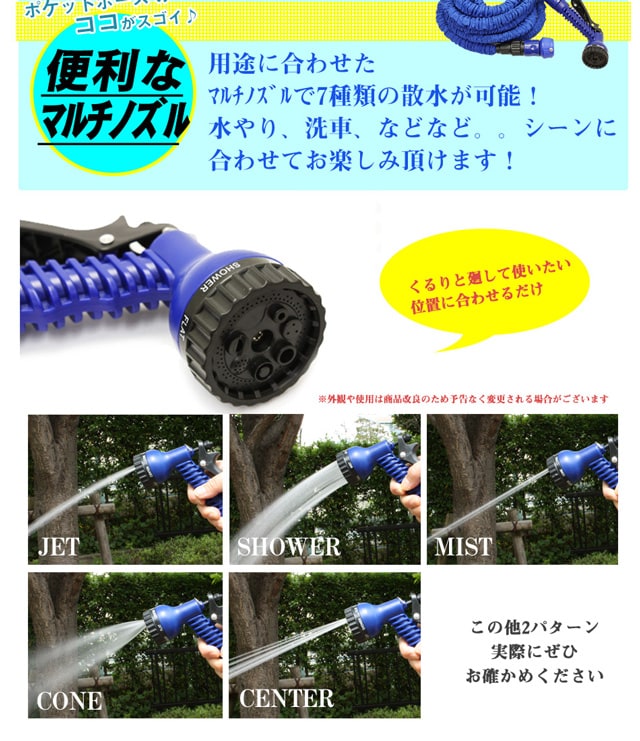 通水で5M⇒最大15Mに伸びる便利ホース★マルチノズルで7種の散水が可能♪軽 量&コンパクトだから使い勝手◎