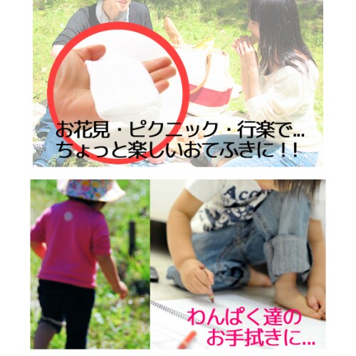 赤ちゃんやお子様とのお出かけにも、緊急のおしりふきに使えたり、外でおやつを食べる前のお手ふき代わりにもいいですね。ママさん達からも予想以上にしっかり拭けると好評なんです。