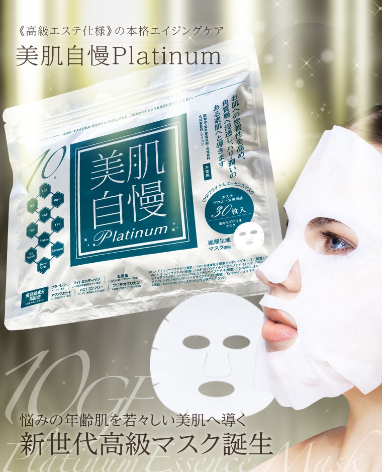 美肌自慢プラチナム 30枚入 | 美容液10本分の美肌成分“高級エステ仕様の贅沢マスク” 潤いで満たされる至福の10分間♪乾燥に負けないしっとりハリツヤ美肌へ
